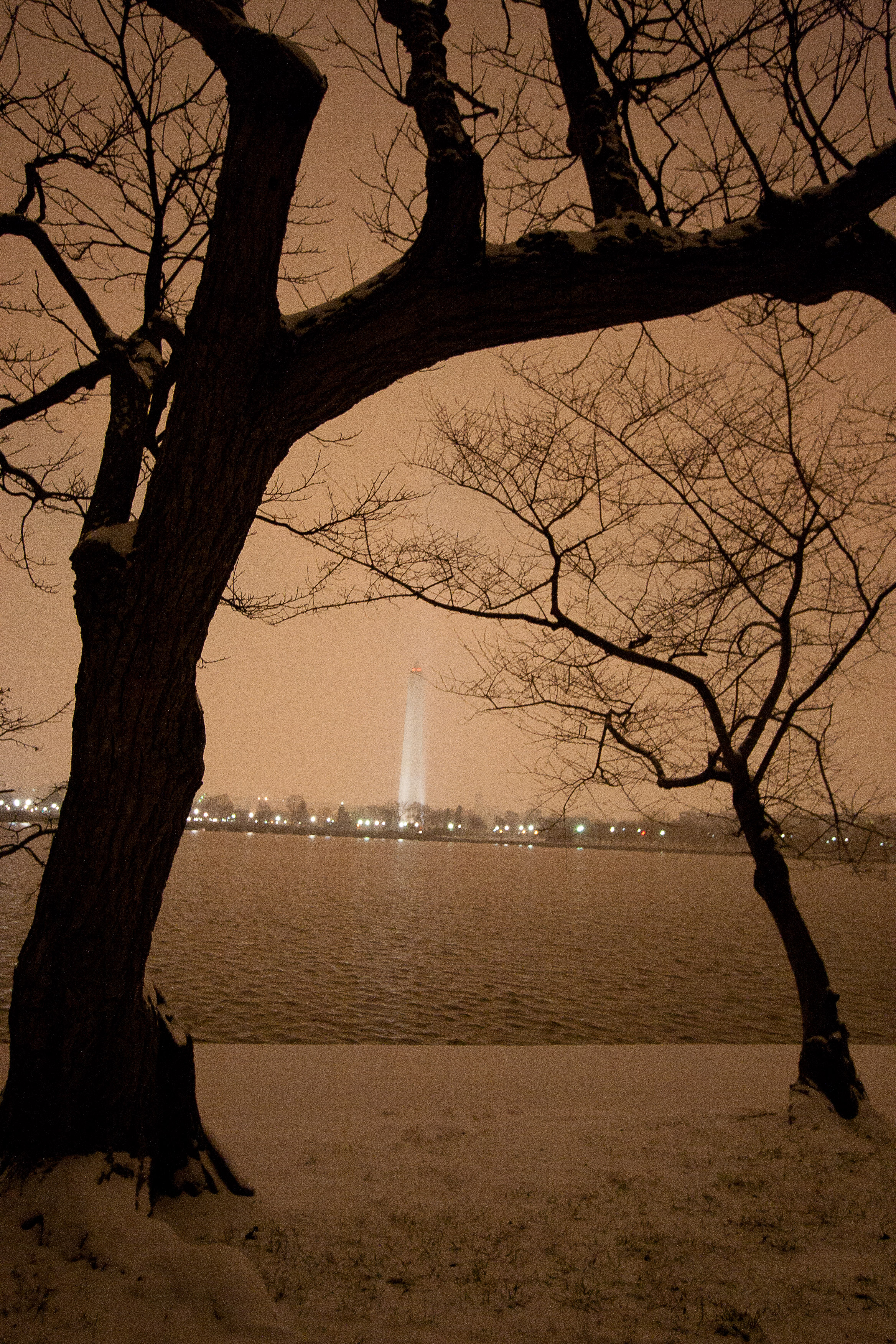 And then where it all started 7 years ago (on our first date, Mike took me to this same spot), Mike and I found ourselves away from the group. It was about midnight on a cold, snowy night, and we were wandering around the Roosevelt Memorial on the Tidal Basin.